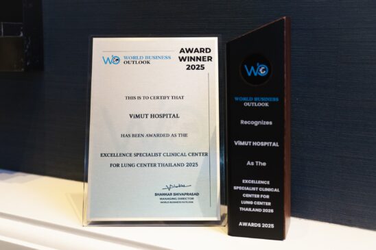 โรงพยาบาลวิมุต โรงพยาบาลเอกชนชั้นนำใจกลางกรุงเทพฯ สร้างชื่อเสียงให้ประเทศไทยบนเวทีนานาชาติอีกครั้ง หลังคว้ารางวัล “Excellence Specialist Clinical Center for Lung Center Thailand 2025” จากเวที World Business Outlook Awards ที่จัดขึ้น ณ โรงแรมพูลแมน คิง เพาเวอร์ กรุงเทพฯ