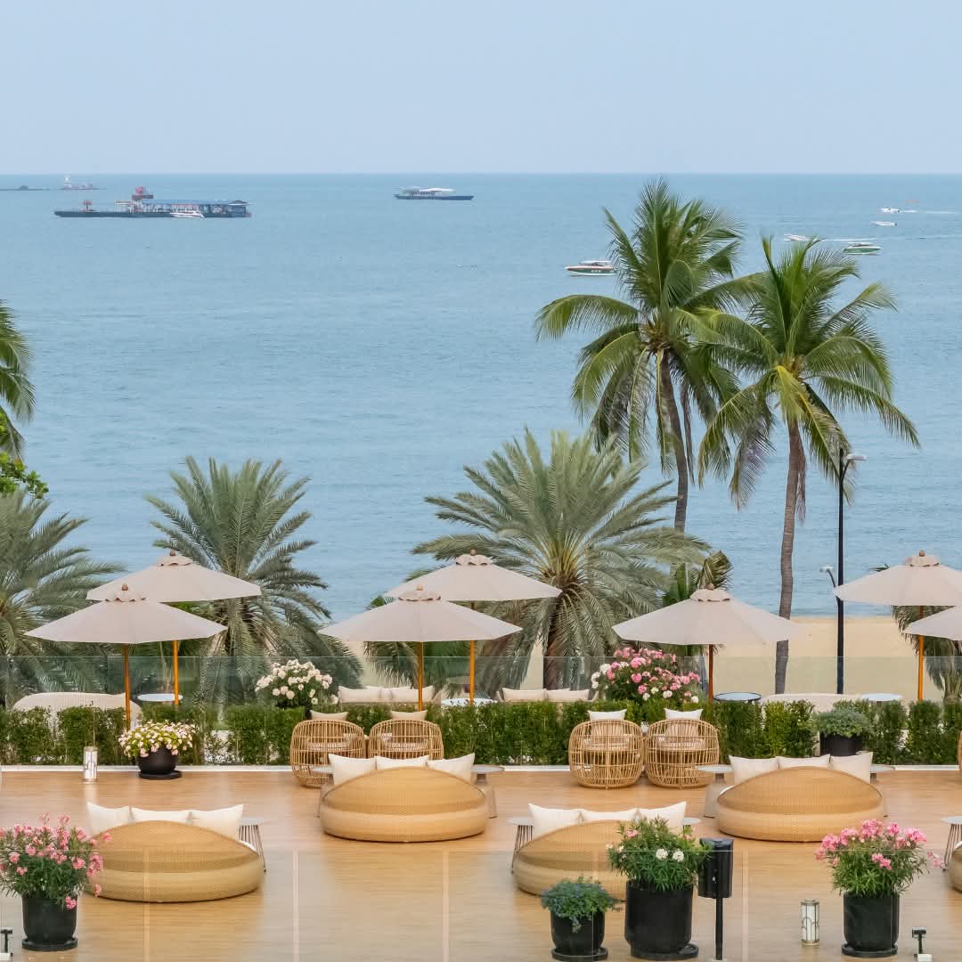 โซน Indoor/Outdoor: มีทั้งโซนห้องแอร์และโซนเปิดโล่งรับลมทะเล